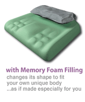 from visco elastic memory foam which responds to temperature and weight and reduces